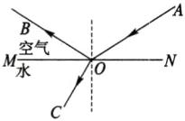 4. 如图所示,$MN$为空气与水的分界面,$AO$为入射光线,$O$为入射点. 在图中画出反射光线和折射光线.