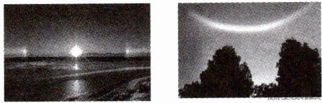 5. 上海天空曾出现罕见的“3个太阳”和“倒挂的彩虹”奇观,如图所示。气象专家解释说,当天的天空有一层比较高的云,它由冰晶组成,冰晶的形态类似于“三棱镜”,使太阳光发生了