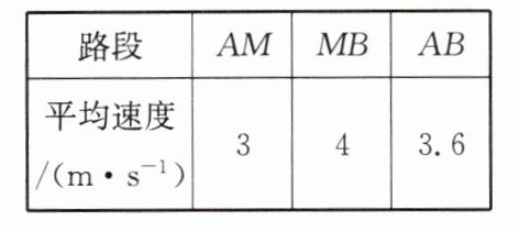 3. (多选)在测量运动物体的平均速度实验中,得到如下表格所示数据,其中 M 为 AB 的中点.下列说法正确的是(
