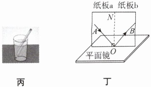 D.图丁:只将纸板 $b$ 绕 $ON$ 向后转动,还能在纸板 $b$ 上看到反射光线