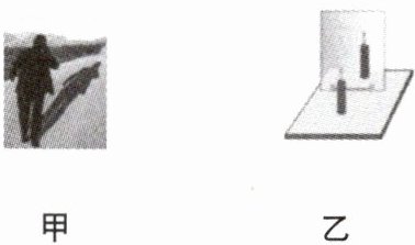 B.图乙:蜡烛远离平面镜时,蜡烛的像变小
