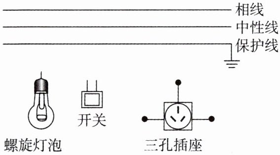 24. 如图所示,要求开关控制螺旋灯泡,将图中元件分别正确连接到电路中。