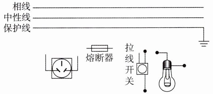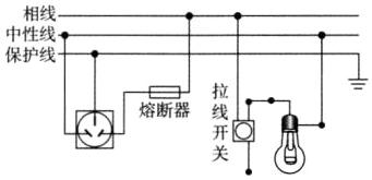 23. 用笔画线代替导线,将图中的拉线开关、电灯、熔断器和插座接入家庭电路中. 要求:符合安全用电原则;熔断器控制插座;拉线开关控制电灯。