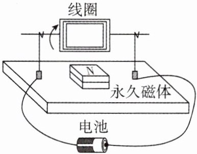 (4)若线圈引线的刮漆方法正确,电池、导线、金属支架的连接和性能良好,电路接通后线圈不能转动,请你分析可能的原因是