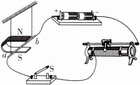 (2)如图所示,将一根导体ab置于蹄形磁体的两极之间,未闭合开关前,导体
