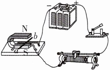 13. 如图是研究“磁场对电流作用”的实验装置。当开关闭合时,导体 $ ab $ 向左运动,则(