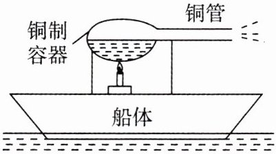 如图是小明制作的简易“蒸汽船”模型.将盛有一定量水的铜制容器安装在“船体”上,用蜡烛对铜制容器底部加热,一段时间后会向右喷蒸汽,“蒸汽船”就向左行驶.