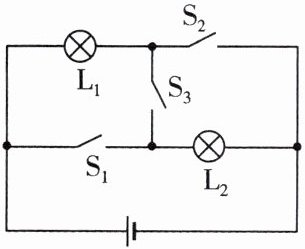 (选填$“L_1$灯丝断了$”“L_2$灯丝断了$”“L_1$短路”或$“L_2$与灯座接触不良”)。(3)排除故障后,闭合开关两灯同时亮,断开开关两灯同时灭;将开关S换接到$L_1$和$L_2$之间、$L_1$和电池负极之间,观察到同样的现象。这样操作的目的是探究