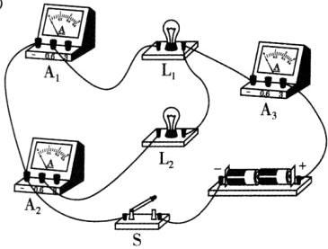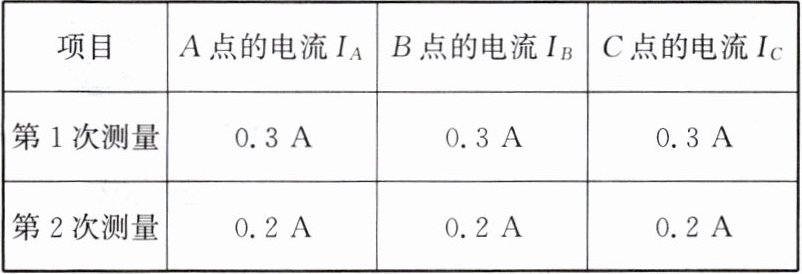 接入,测量流过的电流,看看它们之间有什么关系.换上另外 2 个小灯泡,再次测量 3 点的