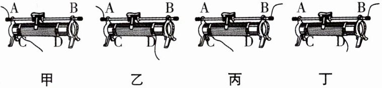2. 如图为滑动变阻器的结构和连入电路的情况示意图。当滑片向右滑动时,连入电路的电阻变小的是