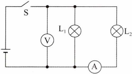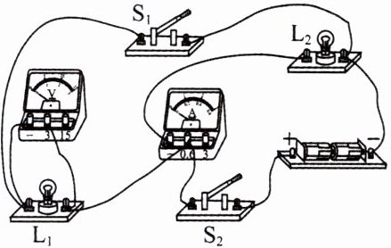 13. 如图所示的电路中,闭合开关 $ S_1 $、$ S_2 $,小灯泡 $ L_1 $和 $ L_2 $正常发光,电流表和电压表均有示数。下列关于电路的分析正确的是(