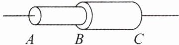 12. 同种材料制成的长度相同、横截面积不同的 AB 和 BC 两段导体按如图所示的方式连入电路中。导体的电阻及通过的电流大小关系错误的是(