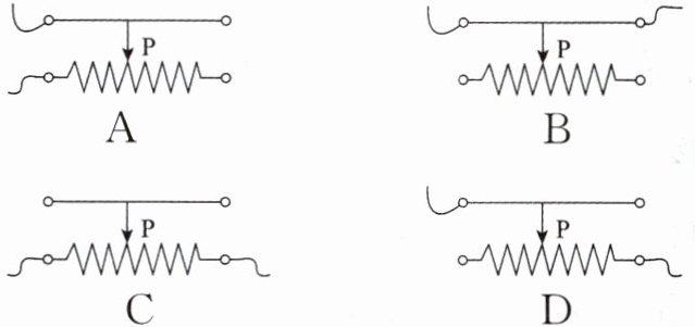 7. 下列图中,能实现当滑片 P 向左滑动时,连入电路的电流变大的是(
