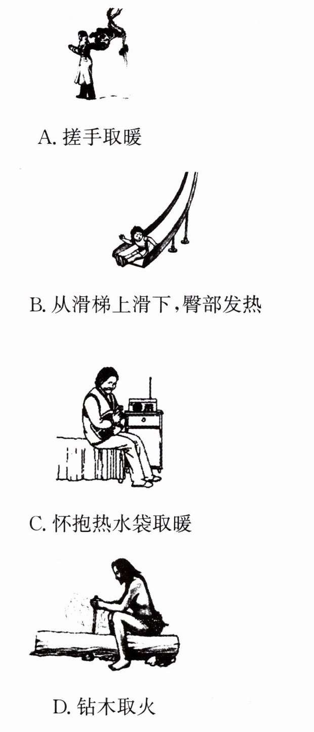 1. 冬天,双手反复摩擦,手会感到暖和;用嘴对着双手“呵气”,手也会感到暖和. 前者是利用