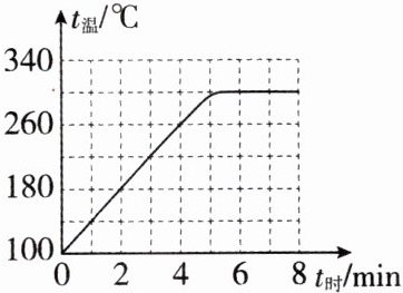 解:由图可知:前4 min温度的变化值$\Delta t=260\ ^{\circ}C-100\ ^{\circ}C=160\ ^{\circ}C$,由$Q_{吸}=cm\Delta t$得$c=\frac{Q_{吸}}{m\Delta t}=\frac{6.72× 10^{4}\ J}{0.2\ kg× 160\ ^{\circ}C}=2.1× 10^{3}\ J/(kg\cdot^{\circ}C)$