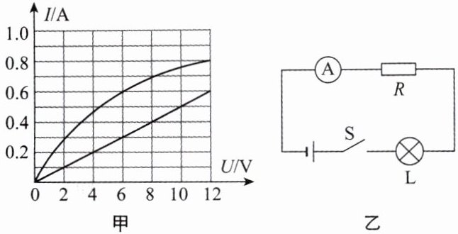 12. 图甲为定值电阻R和灯泡L的I-U图像.现将电阻R和灯泡L接在如图乙所示的电路中,电源电压保持不变.闭合开关S,电流表示数为0.3A.下列判断正确的是(