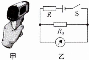 13. 图甲是学校测温用的手持电子测温仪,图乙是它内部的原理图,显示仪“”是由电表改装而成的.电源电压保持不变,R是热敏电阻,其阻值随着温度的升高而减小,定值电阻$ R_0 $为保护电阻.下列关于此测温仪的分析正确的是(