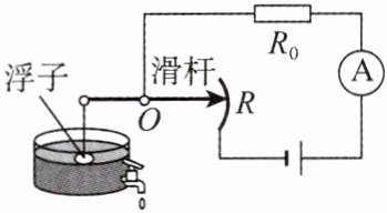 18. 如图是一种测定油箱内油量的装置.滑动变阻器的滑片跟滑杆连接,滑杆可以绕固定轴O转动,另一端固定一个浮子.当电流表示数越小时,滑动变阻器连入电路的阻值