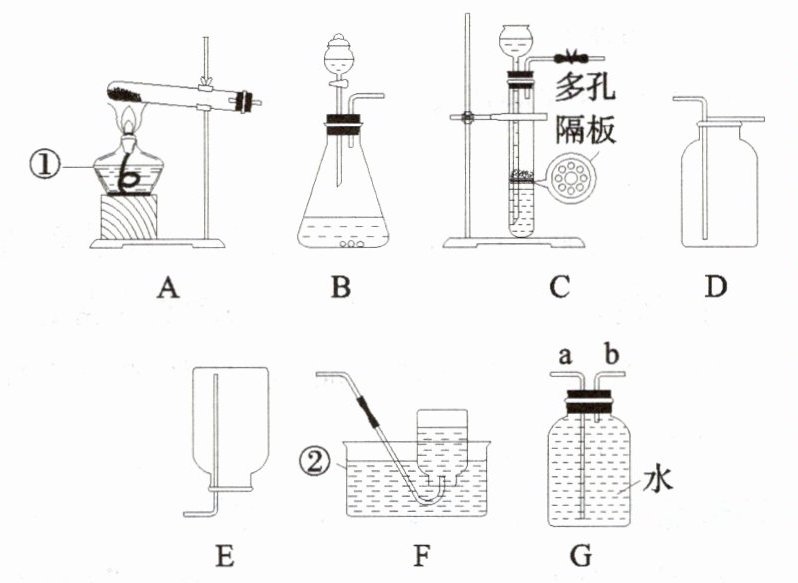(5) 用装置 G 和量筒组合可以用来收集并测量$ H_2 $体积,在 G 中气体应从导管