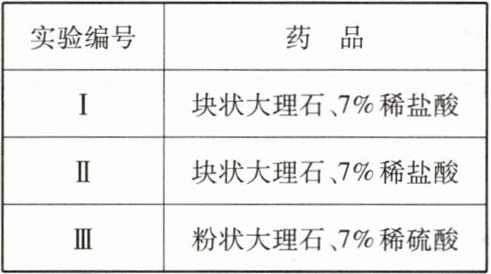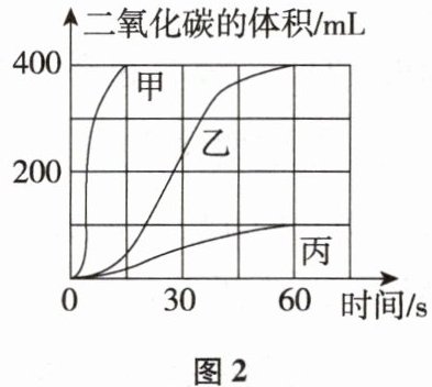 (3) 选用药品。按上表进行实验,取等质量的同种大理石加入足量酸中(杂质不与酸反应),产生二氧化碳的体积随时间变化的曲线如图 2 所示。表中实验Ⅰ对应的图 2 中的曲线是
