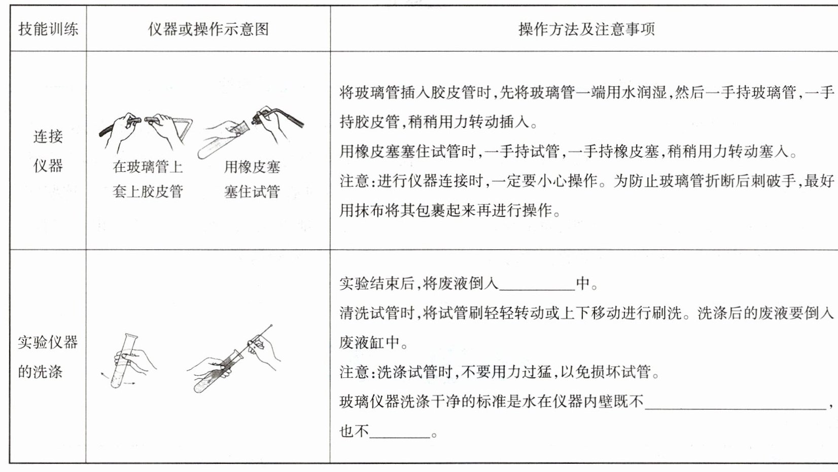 焰对准药品所在部位加热。(3) 玻璃仪器洗净的标准是玻璃仪器内壁附着的水既不