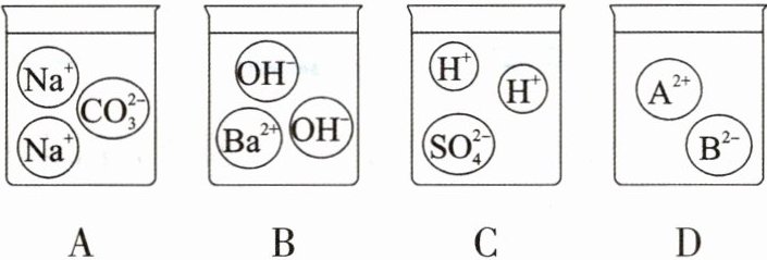 1. 如图是物质M溶于水后的微观示意图,其中能说明M是一种碱的是(