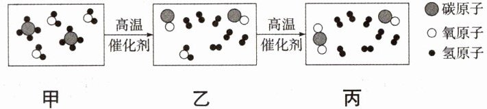 (2) 利用${CH_{4}}和{H_{2}O}$进行催化重整制氢气,反应前后分子变化的微观示意图如图所示。其中“乙→丙”发生反应的化学方程式为