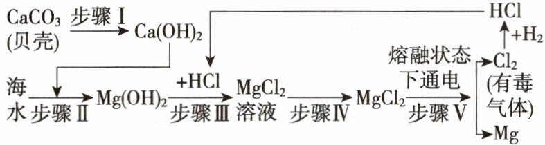 (2)电解产生的Cl₂用于生产HCl,与Mg(OH)₂发生中和反应