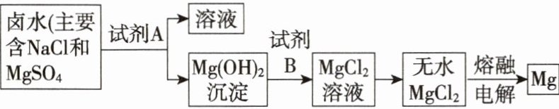 (从丰富的石灰石资源考虑),写出加入试剂B时发生反应的化学方程式:Mg(OH)₂+2HCl=MgCl₂+2H₂O