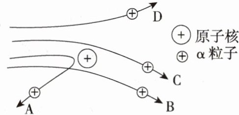 (2) 1911 年,物理学家卢瑟福和他的研究团队用一束带正电的、质量比电子大得多的高速α粒子轰击金箔。他们发现:多数α粒子穿过金箔后仍保持原来的运动方向,少数α粒子发生了较大角度的偏转,极少数α粒子被反弹。