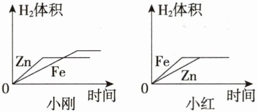 (1)小红 图像中Fe与Zn标反了,Zn的反应速率较Fe快