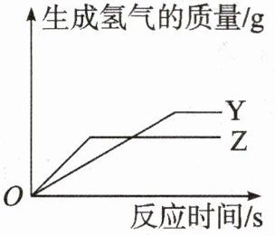 4. 现有质量相等的${X}$、${Y}$、${Z}$ 3 种金属,分别放入 3 份溶质质量分数相等的足量稀硫酸中,${X}$不发生反应,${Y}$、${Z}在生成物中均显+2$价,${Y}$、${Z}$反应生成氢气的质量与反应时间的关系如图所示,则下列说法正确的是(