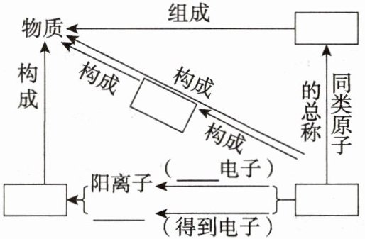 5. 思考物质、分子、原子、离子、元素的关系,并填写下图中的空白及相关习题。