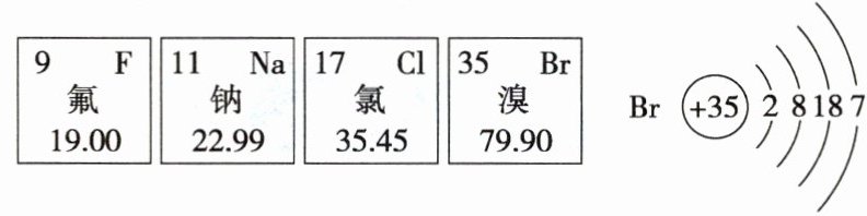 11. 如图为氟、钠、氯、溴4种元素在元素周期表中的相关信息及溴原子的结构示意图。请回答下列问题: