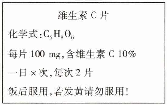 8. 人体缺乏维生素 C 会患坏血病。科学研究发现,服用维生素 C 对预防感冒和抗癌有一定作用。维生素 C 的化学式为$C_{6}H_{8}O_{6}$。下图所示为某种“维生素 C 片”说明书的一部分。请你回答下列问题: