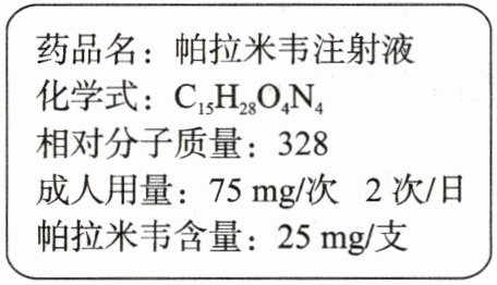 (写最简比)。(2)帕拉米韦中氧元素的质量分数是