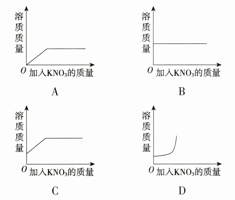 4. 一定温度下,向一定量的水中,逐渐加入硝酸钾固体,下列图像符合溶液中溶质质量变化规律的是(