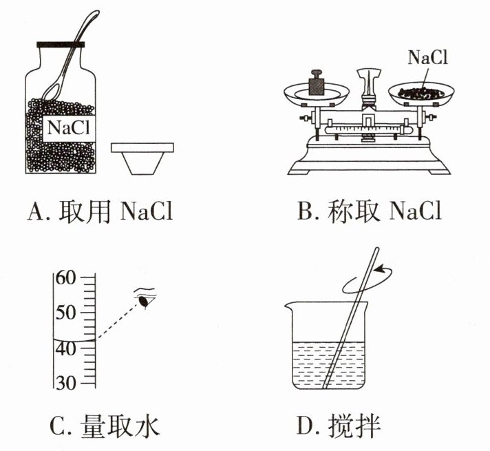 4. 现需要配制一定质量、一定浓度的$NaCl$溶液。下列相关的实验操作正确的是(