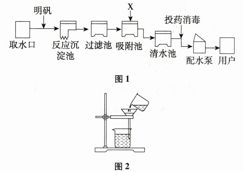 2. 居民生活用水的主要来源是水库中的天然水,经自来水厂处理后输送到千家万户。如图 1 是自来水厂净水过程示意图。请根据图示回答下列问题:
