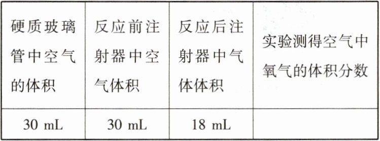 D.在正常操作情况下,反应结束后消耗氧气的总体积应该是反应前注射器内气体体积的1/5