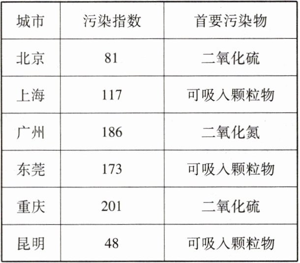 6. 某一天,下列城市的空气质量监测数据如下表: