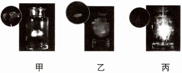 8. 氧气是一种化学性质比较活泼的气体,它可以和许多物质发生反应。下图甲、乙、丙分别是木炭、硫粉和细铁丝在空气中和氧气中的反应。