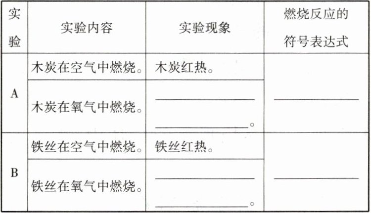 6. 化学反应的剧烈程度与反应物浓度之间有一定规律。某实验小组各取等质量的木炭和等质量的铁丝分别在容积相同的容器中燃烧,记录如下: