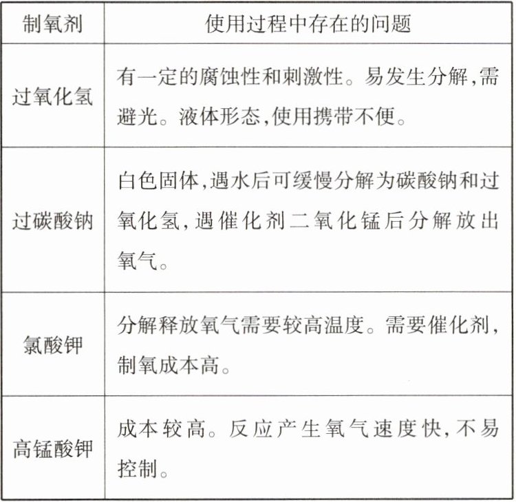 (3) 根据下面的资料选择适合家用简易制氧设备的制氧剂。