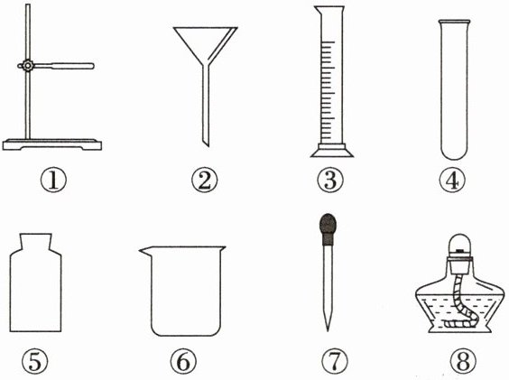 (1) 图中从①到⑧所代表的实验仪器的名称分别是