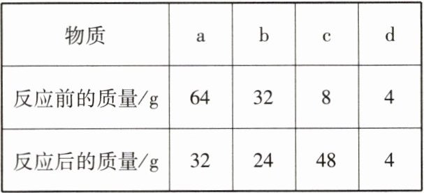 6. 在一密闭容器中加入 a、b、c、d 4 种物质,测得反应前后各物质的质量如下表。