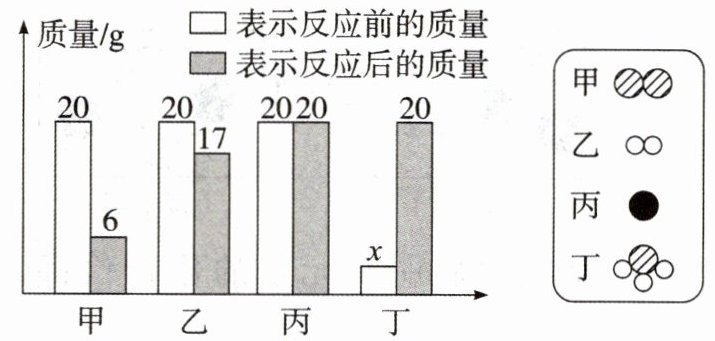 8. 在密闭容器中加入一定质量的甲、乙、丙、丁 4 种物质,反应前后各物质的质量关系和微观结构如图所示。下列说法正确的是(