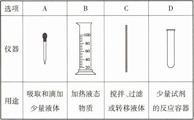 4. 下表是化学实验室部分常用仪器,其用途有误的是(