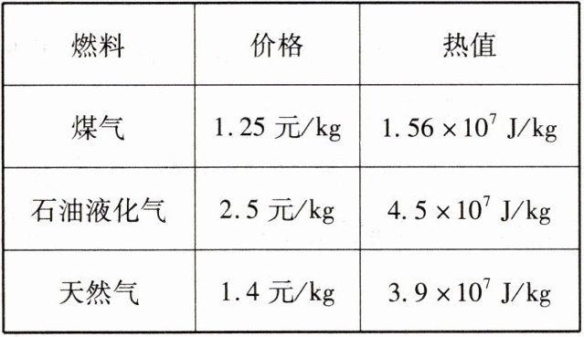 10. 下表是我市城市居民常用的燃料、价格和热值,通过分析回答下列问题。