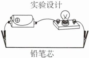 拓展实验:如图所示,使铅笔芯一端的导线夹固定,沿铅笔芯移动另一个导线夹,小灯泡的亮度发生连续的变化,接入电路的铅笔芯越短,电阻越小,小灯泡越亮。
